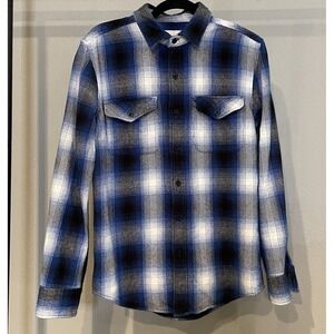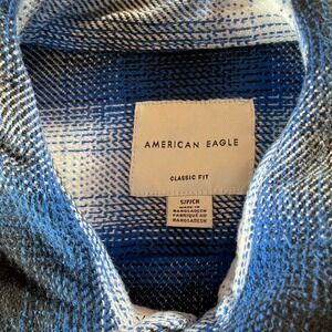 American Eagle Men's Blue & Black Plaid Flannel Shirt - Size Small Classic Fit