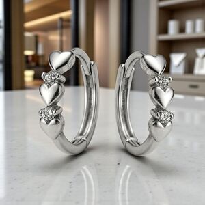 Sterling silver hoop earrings | minimalist heart hoops | dainty zirconia earrings | everyday earrings | S925 silver jewelry | hypoallergenic earrings | silver hoops | gift for her | quiet luxury earrings | timeless hoop earrings | premium jewelry gift | chic silver earrings | classic hoops with hearts | trendy silver earrings | Poshmark jewelry boutique | dainty hoops | heart shaped jewelry | romantic earrings | anniversary gift idea | luxury minimalist jewelry | silver fashion hoops | bridal earrings |