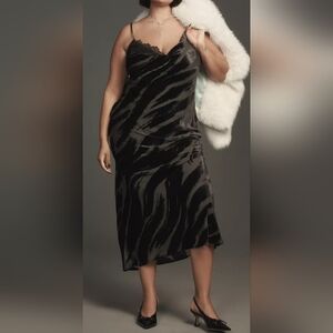 By Anthropologie Cowl-Neck Velvet & Lace Midi Slip Dress, Black Pattern, LARGE