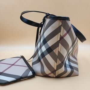Burberry Supernova Check Coated Canvas Patent Leather Nickie Tote..Auth.. W/COA