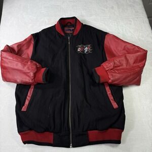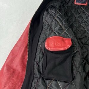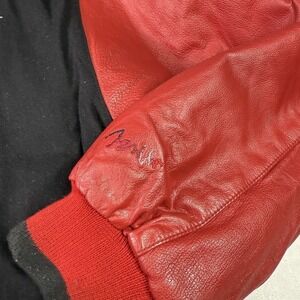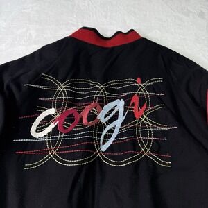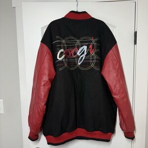 Vintage Coogi Varsity Leather Jacket Mens 2XL Black Red Wool Embroidered Logo