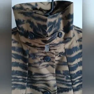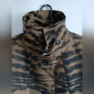 DKNY Black & Brown Animal Print Mid Length Lightweight Coat SzS Pockets