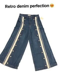 Cool and effortlessly vintage-inspired, these We The Free snap-side jeans feature a wide-leg silhouette with contrasting side stripes and functional snap buttons for an edgy, retro vibe. Perfect for pairing with crop tops, graphic tees, or cozy sweaters.