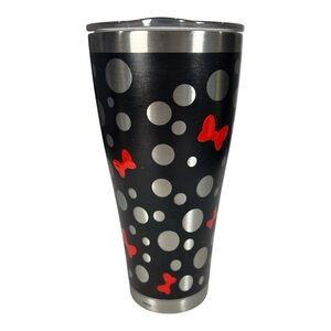 The Tervis Disney Minnie Mouse 30 ounce Stainless Steel Travel Tumbler with Lid is a collectible item perfect for fans of Disney and Minnie Mouse. With its sleek design and branded lid, this tumbler is both functional and stylish for on-the-go use. Showcasing the iconic Minnie Mouse character, this tumbler is a must-have for any Disneyana collector or enthusiast. Enjoy your favorite beverage in style with this contemporary and adorable addition to your collection.