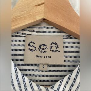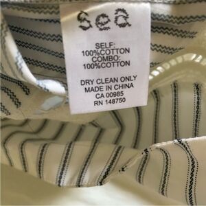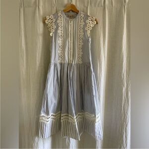 Sea New York blue & white stripe cotton midi dress with lace detail. Size 0.