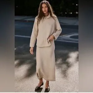 Fit: Top: Oversized turtleneck silhouette; Skirt: Mid-rise, true column silhouette