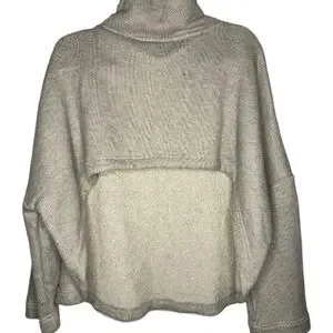 Top: Cozy knit fabrication, high-low hemline, exaggerated neckline, reversible design that can be worn at the front or back; Skirt: Coordinating fabrication, pull-on design, seamed detail at the hips for added shape