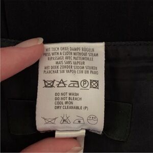 - Fabric 1 100% polyester. Fabric 2 50% nylon, 50% polyurethane. Lining 100% polyester. Dry clean