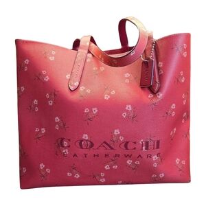 COACH NWOT Leatherware Highline Tote Coral Pink Floral #55181