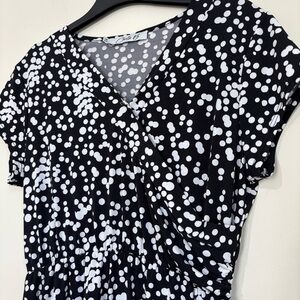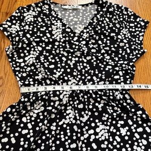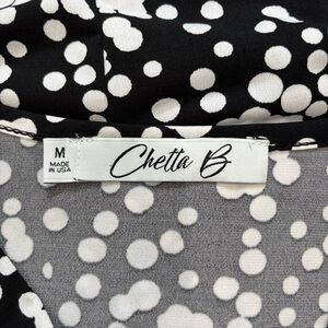 Chetta B Faux Wrap V Neck short sleeve black white A-line Dress size M