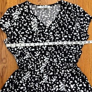 Chetta B Faux Wrap V Neck short sleeve black white A-line Dress