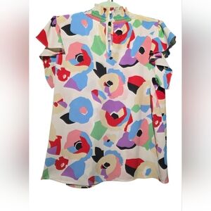 THML Colorful Ruffle Sleeve Women's Top Size Small PTP 20 Length 24