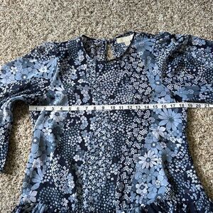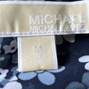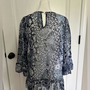 Michael Kors Women’s Blue Floral Sheer Blouse with Bell Sleeve Size Medium