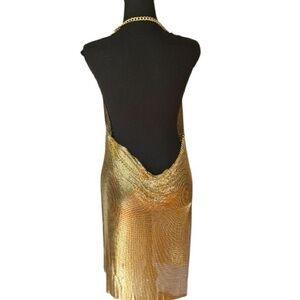Gold Chainmail Backless Halter Mini Dress Metallic Mesh Party