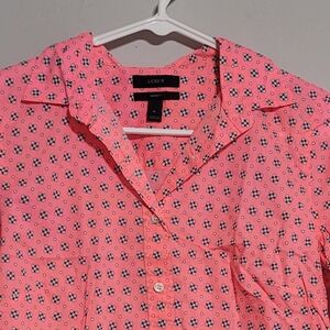 J Crew XS S Womens Perfect Shirt Top Blouse Button Up Neon Pink Navy Blue Sz 4
