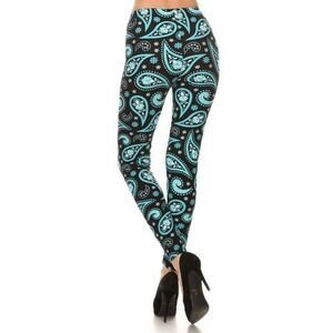 Plus Size Womens Paisley Print, High Waisted Leggings In A Fitted Style With And Elastic Waist.