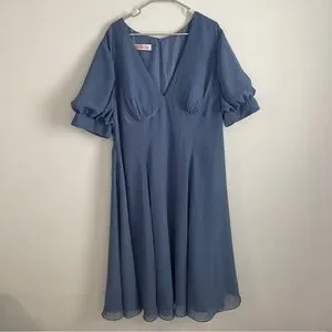 NWT JJ’s House V-nech A-line Chiffon Midi Dress Puff Sleeves Tea-Length 271450