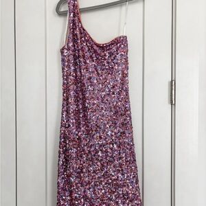 Lulus Just Tonight Bodycon Dress Womens XS Pink Iridescent Sequin One Arm