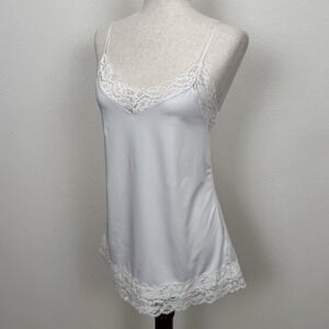 White House Black Market Top Womens XL White Lace Trim Cami Siren Fairy Coquette