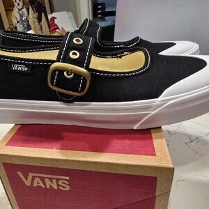Vans NEW Mary Jane Sneakers Black/White Womens Size US 8.5 Ballet Slipper NEW