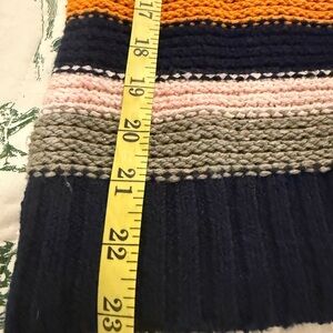 NWT Stay cozy and stylish with the Women's Striped Navy Sweater. Featuring a chic combination of navy, pink, gray, and orange stripes, this sweater is perfect for any casual outing.