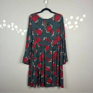 Torrid Florla Mini Challis Skater Dress Slate Gray Red Size 3X