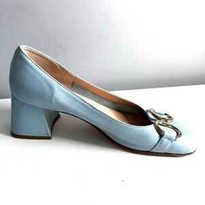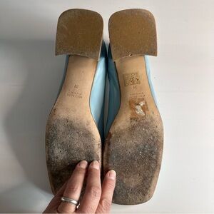 SCARLET Made in Italy, Low Block Heel, Leather, Baby Blue, Buckle Detail, Sz 8.5