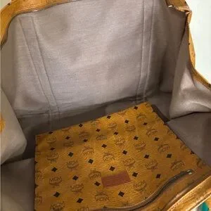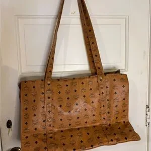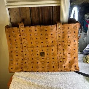 MCM Large Cognac Visetos Tote Shoulder Travel Carry on Tote EUC
