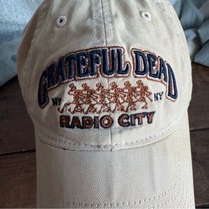 Liquid Blue 2000 dad hat. Grateful Dead Radio City embroidered on front. 10/80 apple logo on back. Some staining here and there consistent with age and wear.