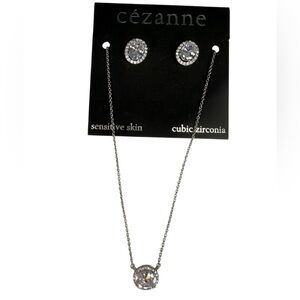 Cezanne Silver Cubic Zirconia Earrings and Necklace Set
