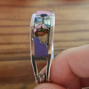 5 Vtg Taxco Mexico Sterling Silver Mother of Pearl Inlay Hinged Cuff Bracelet
