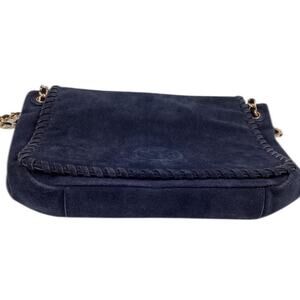 TORY BURCH NAVY SUEDE WHIPSTITCH FLAP SHOULDER BAG