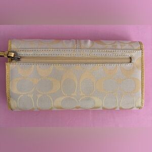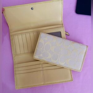Coach Signature Trifold Wallet Sunshine Yellow Canvas Leather Trim