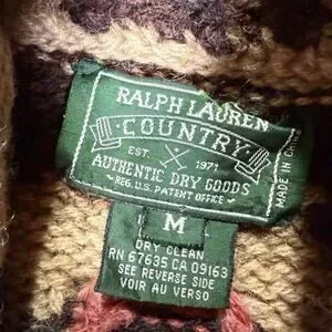 Exceptional vintage Ralph Lauren Country cardigan featuring a bold Southwestern / Native-inspired geometric pattern. This is a hand-knit, heavyweight wool piece from Ralph Lauren’s highly collectible Country line, known for its artisanal craftsmanship and limited production.