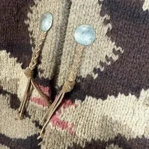 Designed with an open front and leather braided ties with engraved metal conchos, this sweater embodies classic Ralph Lauren heritage style—rugged, Western, and timeless. Substantial in weight and construction, this is a statement piece meant to be worn or collected.