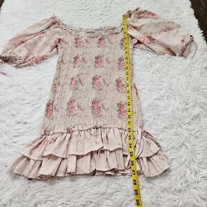 Strangers & Lovers Women's Smocked Bodice Puff Sleeve Drop Waist Mini Dress Sz M
