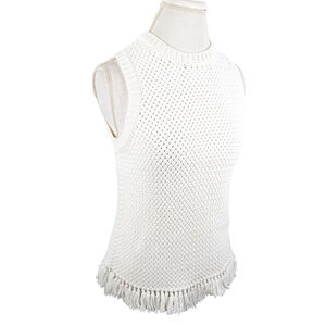 Theory Meenara Soft Chain Cotton Sleeveless Sweater Tank Tassel Fringe Size S
