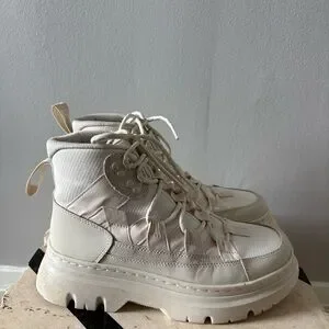 Stylish lace-up boots by Dr. Martens. Features a chunky sole and durable design. Perfect for any casual outfit. LOVED THEM!!! Never wore them. Too heavy for my feet