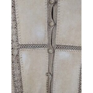 Overland Suede Leather Vest Women's XL Boho Patchwork Crochet Western Festival