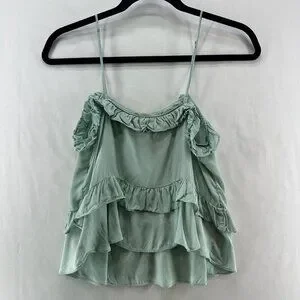 H&M Tank Top Womens Size 6 Ruffled Tiered Cami Sleeveless Viscose Silk Green