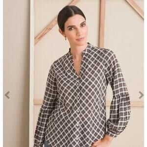 Chico’s Brown Plaid Button Front Peasant Blouse Size 1 US M/8 Boho Fall Casual