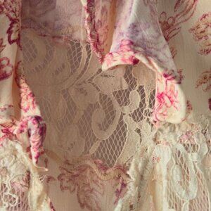 Free People Lucie Mini Dress Tie Open Back Lace Detail Puff Sleeves Size 0
