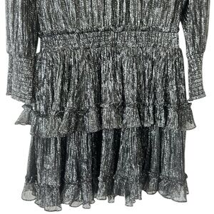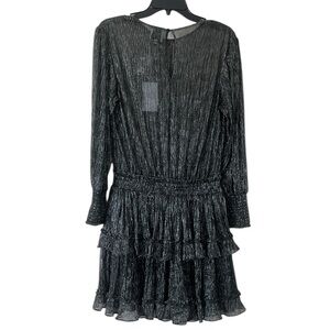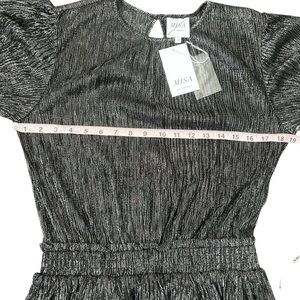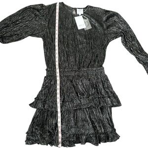 NWT Misa Los Angeles Black Silver Sheer Bodice Ruffled L/S Mini Dress Small