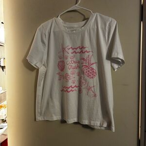 This ladies t- shirt features a playful pink design on a classic white background. Perfect for everyday wear, it combines comfort with style. •Citrus Crush• Print This top was only tried on!