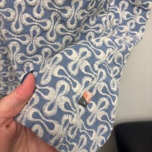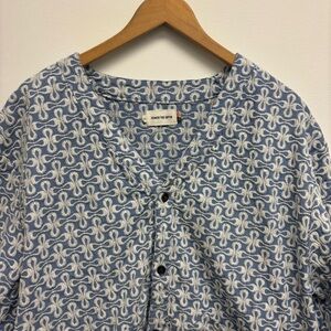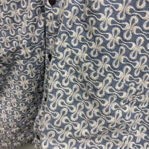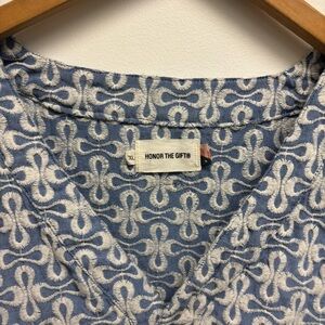 Amazing Honor The Gift Infinity Short Sleeve Woven Top. All over embroidery. Button front. Cropped fit.