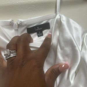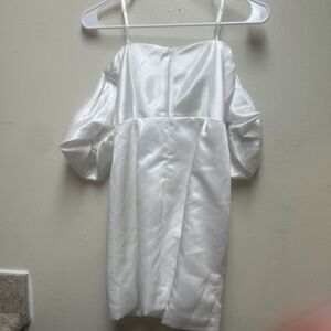 Lulus significant sensation satin off-shoulder mini dress S Off White Elope Wed