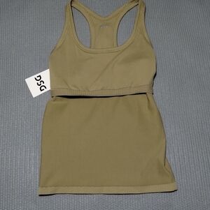 Stylish olive green racerback tank top. Perfect for casual wear.
