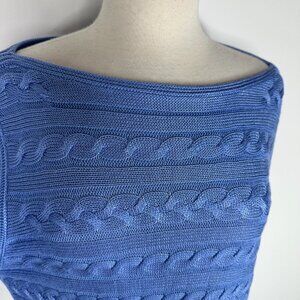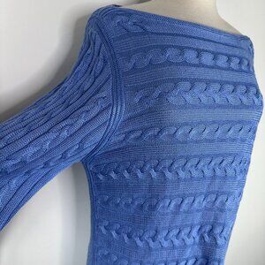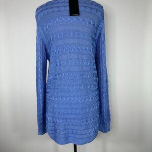Lauren Ralph Lauren Blue Cotton Blend Boat Neck Cable Knit Sweater XL RP $99