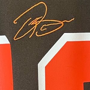 Show off your Cleveland Browns pride with this women's medium Nike On Field Odell Beckham Jr #13 jersey. The jersey features the iconic Brown's colors of brown and orange with the player's name and number prominently displayed. This jersey is perfect for football fans and collectors alike.