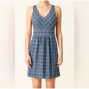 Maeve anthropologie dress size 0 blue tank cotton blend knit flare lazuli Aztec